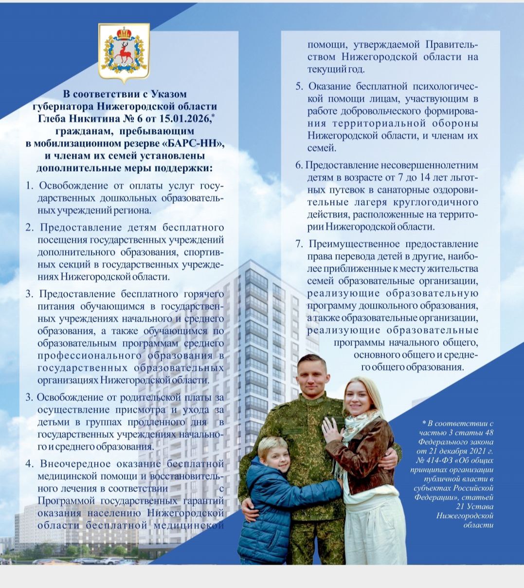 Меры социальной поддержки граждан, пребывающих в мобилизационном людском резерве «Барс-НН», и членов их семей.